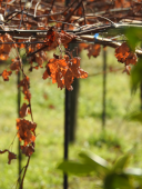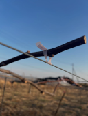 テープナーという小農具をつかって、今年伸びた新梢を棚に止めていきます。風から守るためです。 太陽の光を受けられるように、できるだけ枝が重ならないように止めていきます。 |